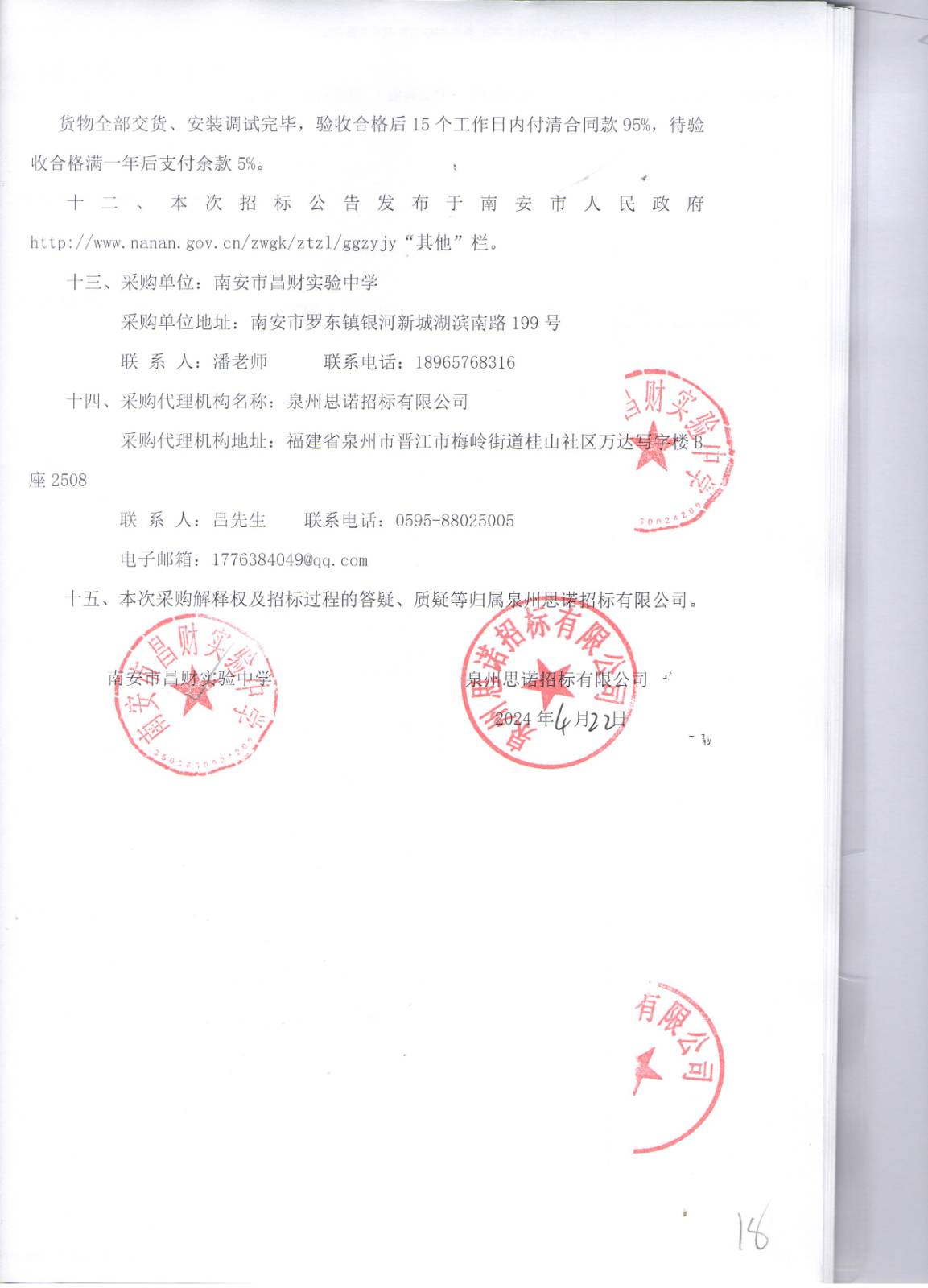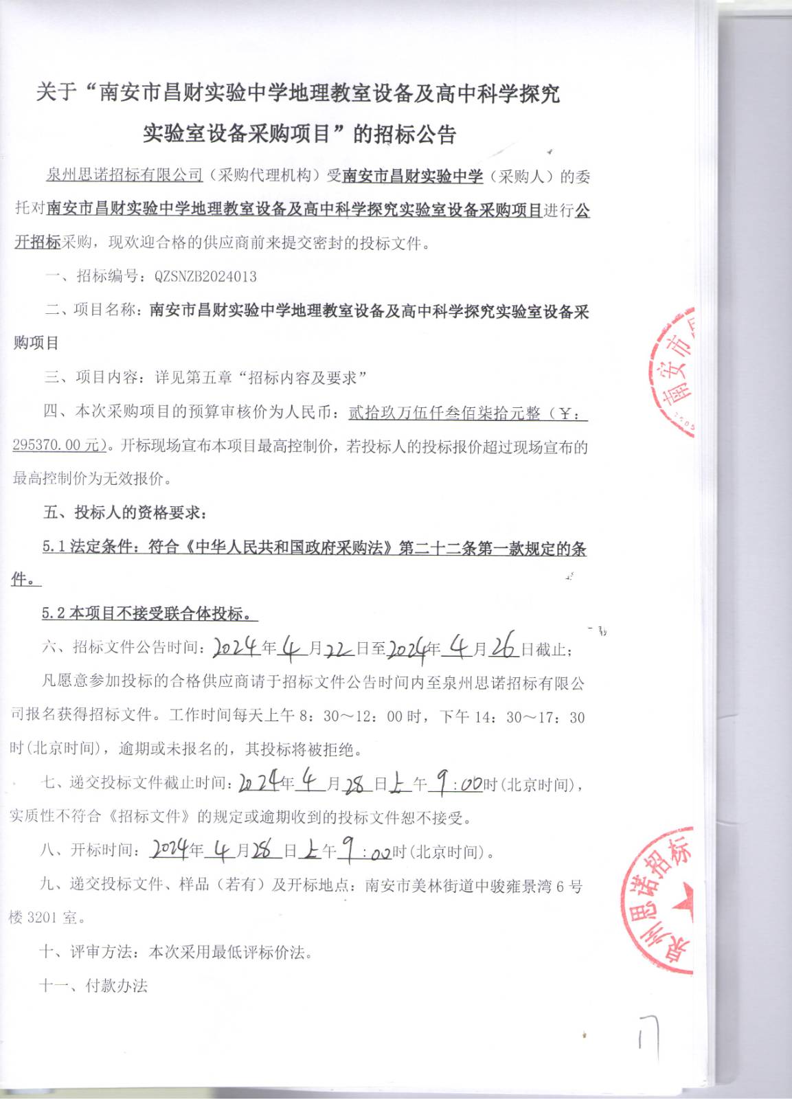 南安市昌财实验中学地理教室设备及高中科学探究实验室设备采购项目招标公告