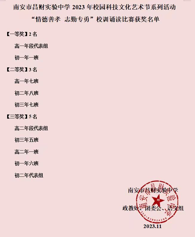 “情德善孝,志勇专勤”校训诵读评分表(2023.10.30).docx